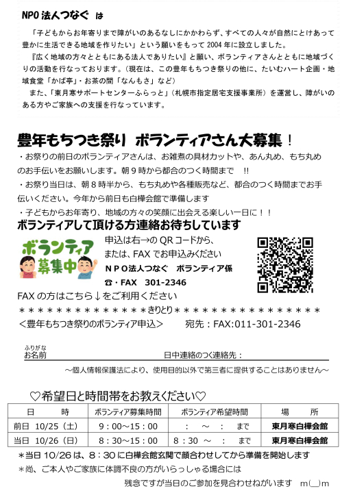 短時間の参加でも、一日通しての参加でも、前日準備だけの参加でも大歓迎です。