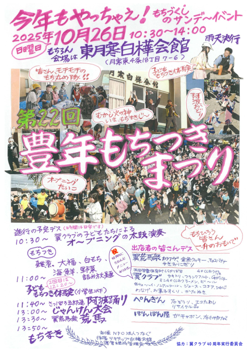 小学生までを対象とした「子どももちつき体験」は参加無料でついたお餅の試食つきです。「じ