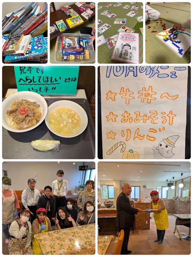 10月のメニューは人気投票で第一位だった牛丼、みそ汁、りんごでした!